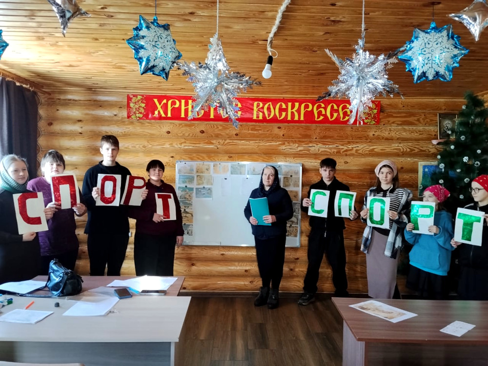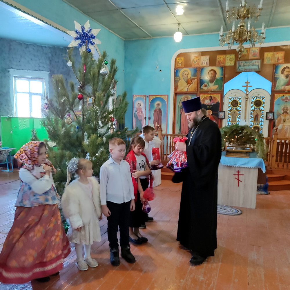 В селе Новоишимское Федченко Елена Николаевна провела игру «Как дарить подарки?». В процессе игры каждый ребёнок, уже получивший подарок, не прячет его от других, а, наоборот, с радостью показывает и «рекламирует» свой чудесный презент, приглашая других взять его и поделиться радостью. Игра учит детей жертвенности, доброжелательности, умению делиться и заботиться о ближних. В Свято-Никольском храме с. Новоишимское Панчук Л. Е. и Гвоздева Е. Н. провели познавательный урок о святых, развлекательные игры для детей «После Рождества — с радостью». дети разделились на две команды — «Ангелы добра» и «Лучики света» . Для участников провели викторину о Рождестве, конкурс для капитанов, где участвовали капитаны Кузнецов Кирилл и Манатов Родион, ребята проявили свои знания, смекалку и активность. Для младшей группы были подготовлены загадки, интеллектуальная игра «Собери слово» и весёлые подвижные игры с шариками. Ребята с радостью включались во все задания, показали свои знания, проявили смекалку и дружбу. В завершение мероприятия каждый участник получил маленький приз и хорошее настроение, затем все вместе приняли участие в трапезе.