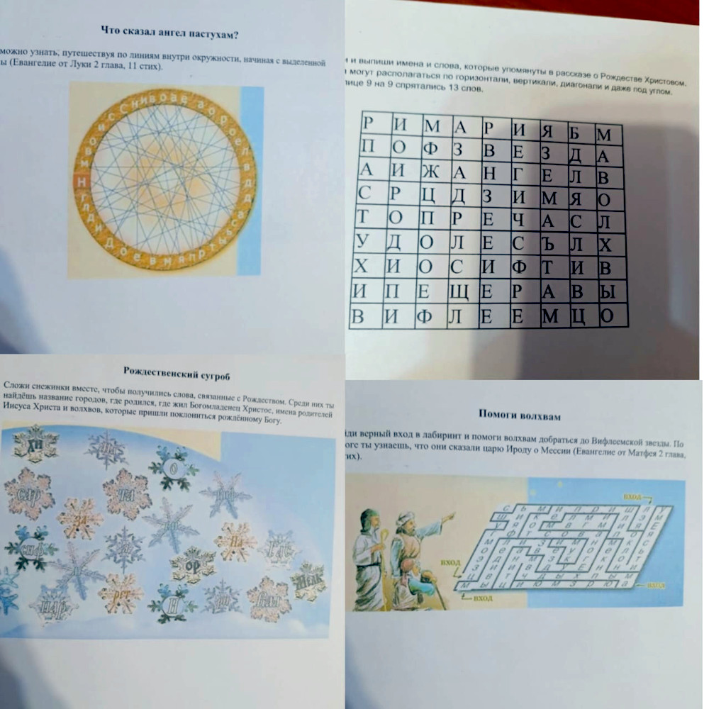 Понять духовное содержание праздника можно из библейских историй. В каждом классе епархии ребята слушали рассказы о рождении Иисуса Христа, ангелах, пастухах и волхвах. Такие уроки помогают детям усвоить глубокий смысл заботы, любви и смирения, которые лежат в основе Рождества. Через создание рождественских украшений и поделок — изготовление елочных игрушек, ангелочков — ребята могут выразить свою творческую волю и почувствовать атмосферу праздника. На концертах и утренниках, где исполняли рождественские песни и читали рождественские стихи, наполняли сердца радостью, закрепляли знания о празднике.
