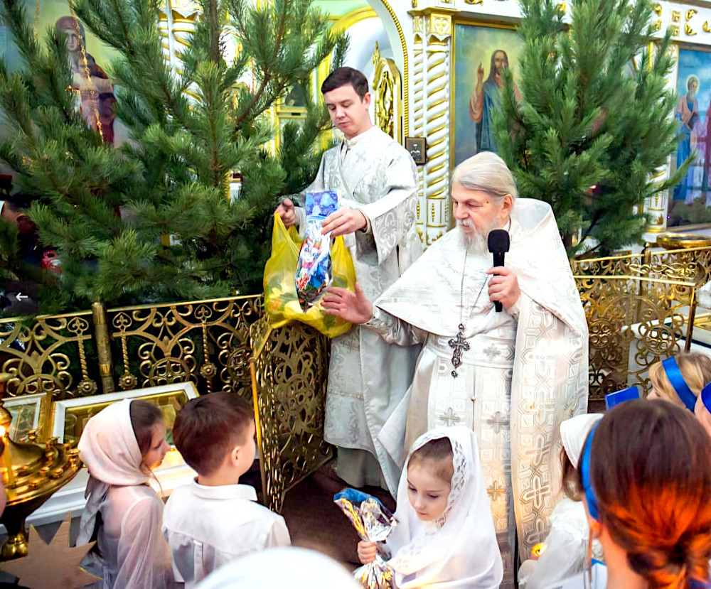 Дети храма Покрова Пресвятой Богородицы г. Тайынша поздравили прихожан с праздником Рождества Христова. Читали стихи, пели песни и колядки, двое ребят сыграли классические произведения на пианино. В конце выступления настоятель храма вручил победителям конкурса «Рождественские фантазии» епархиальные грамоты и награды, а также подарки для всех участников и пожелал Божией помощи в дальнейших трудах на благо Святой Церкви.