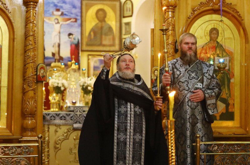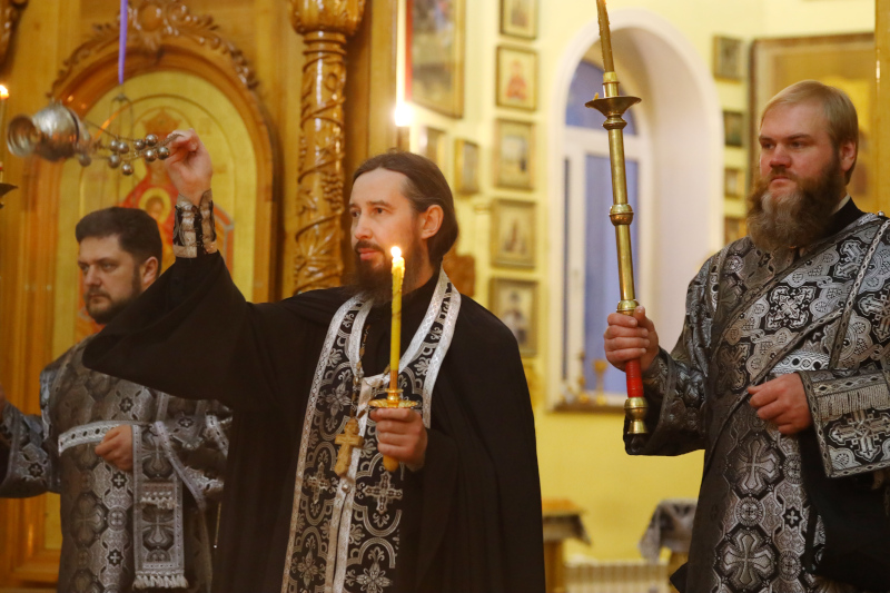 За богослужением были прочитаны статии Погребения. 17 Кафизма, сопровождаемая тропарями Великой субботы была прочитана духовенством у плащаницы.