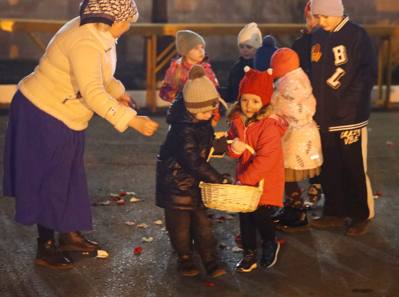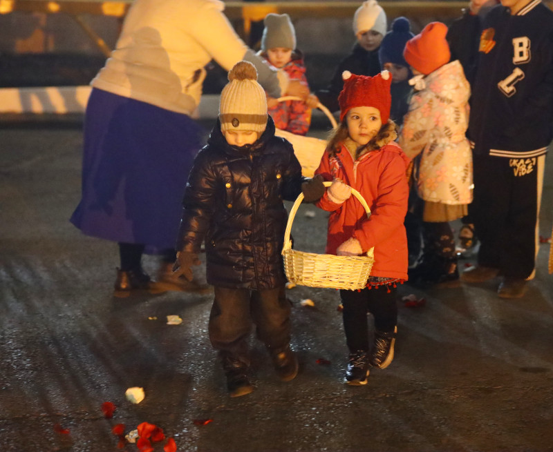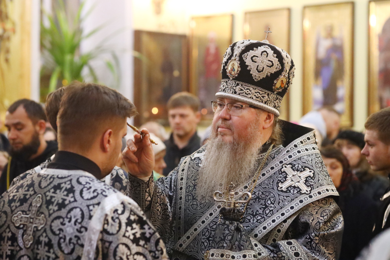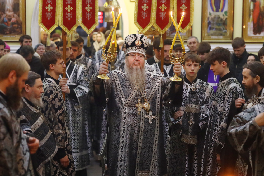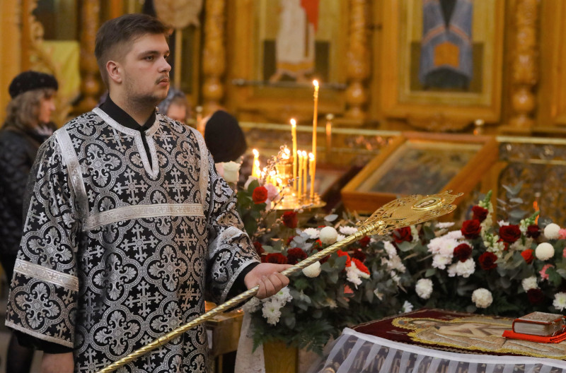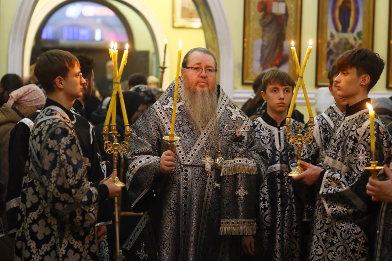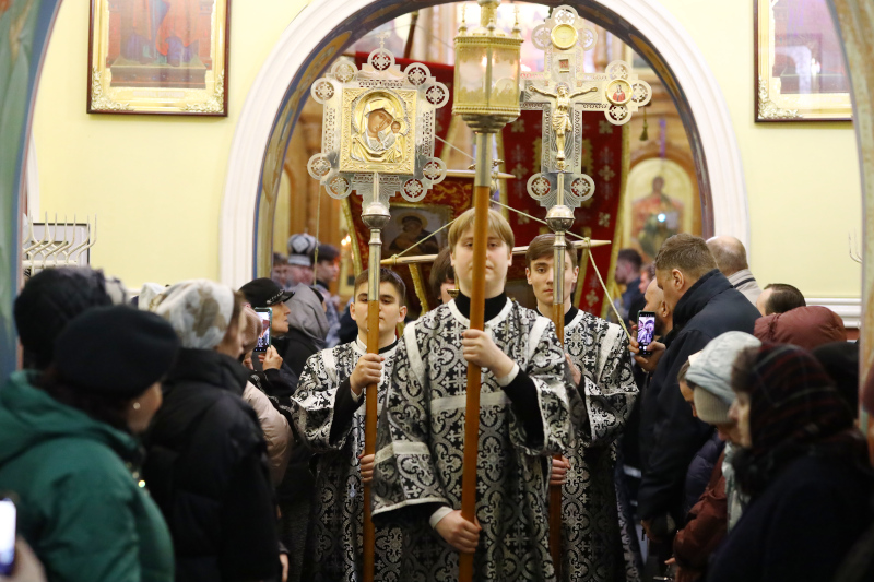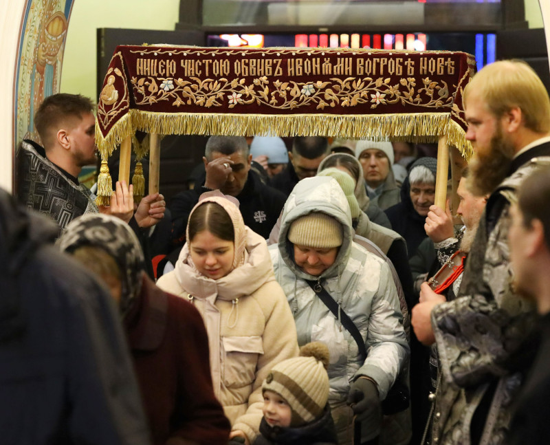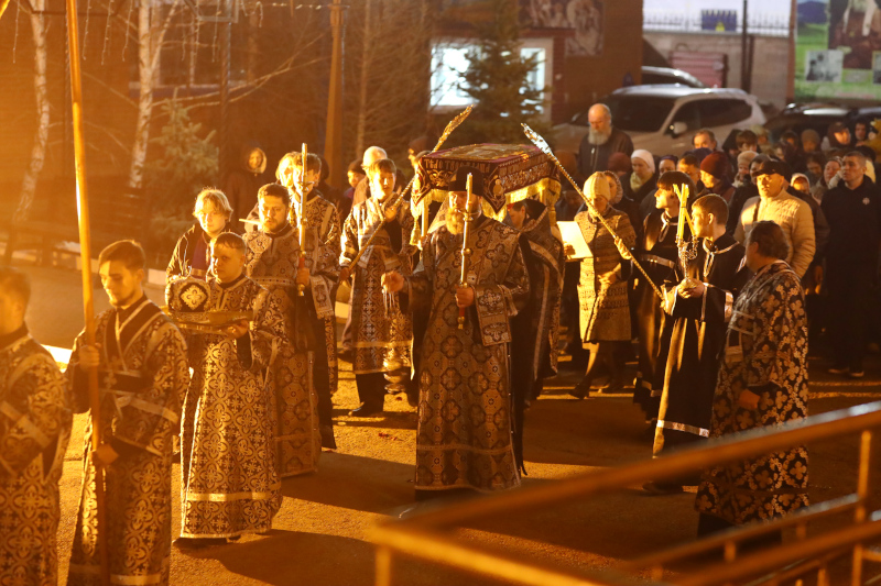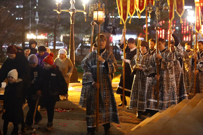 В завершении богослужения духовенство собора совершило крестный ход вокруг храма с пением «Святый Боже». Крестный ход сопровождался погребальным звоном колоколов.