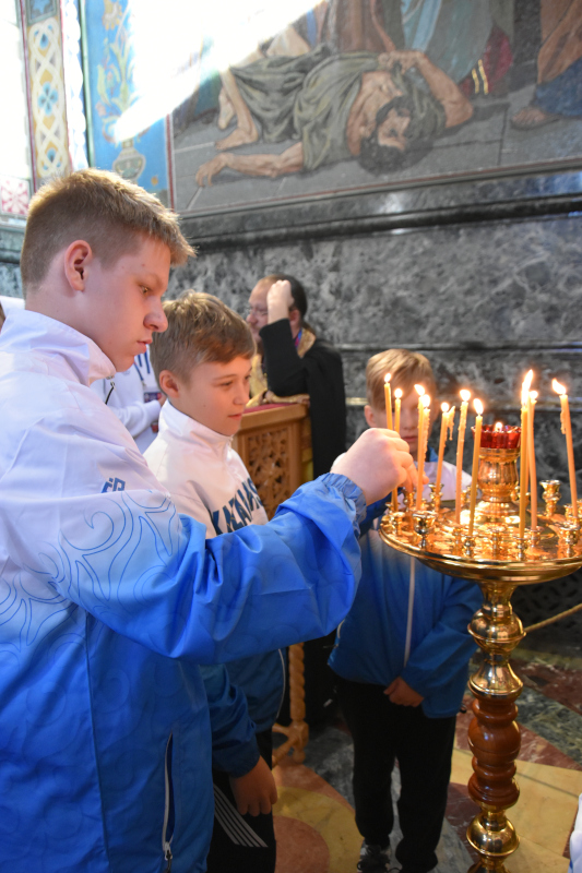12 сентября, в день памяти святого благоверного князя Александра Невского, казахстанская сборная молилась за праздничным богослужением в Воскресенском соборе («Спас-на-Крови»), после чего приняла участие в масштабном крестном ходе, собравшем более 100 тысяч человек.