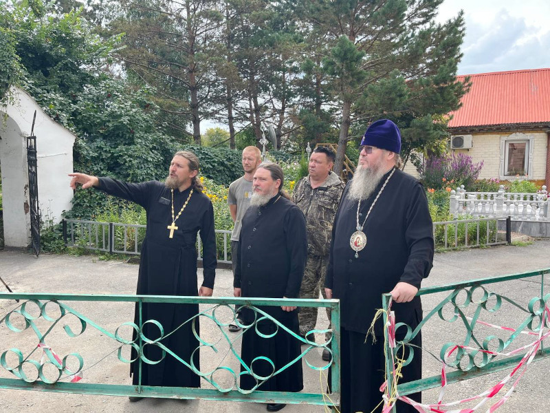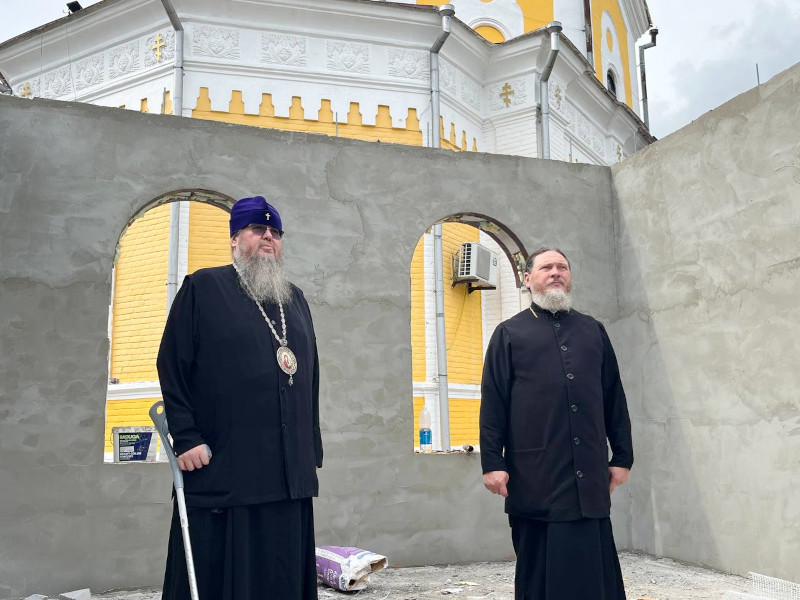 Владыка указал руководителю строительством Сергею Михайловичу Денисову на недочеты при проведении строительства и пожелал Божией помощи в завершении строительства нужного для епархии музея.