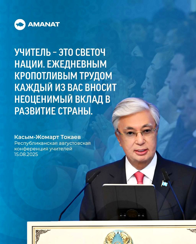 15 августа в Республиканской августовской конференции принял участие Президент страны Касым-Жомарт Кемелевич Токаев. В своем выступлении Президент особо отметил роль педагогов в обществе: «учитель — это светоч нации». Опираясь на слова Президента педагоги поставили перед собой первую важную задачу: Повышение качества образования на основе инициативности, креативности и новаторского подхода учителей.