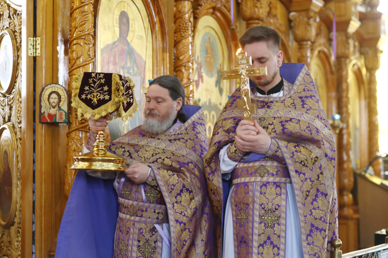 Божественную Литургию в этот день по чину святителя Василия Великого в кафедральном соборе Вознесения Господня совершил Высокопреосвященный Владимир, архиепископ Петропавловский и Булаевский в сослужении духовенства собора. Песнопения Литургии исполнил хор Кафедрального собора под управлением регента Затай А. А.