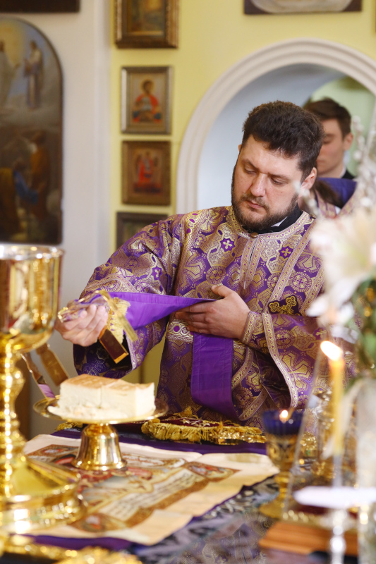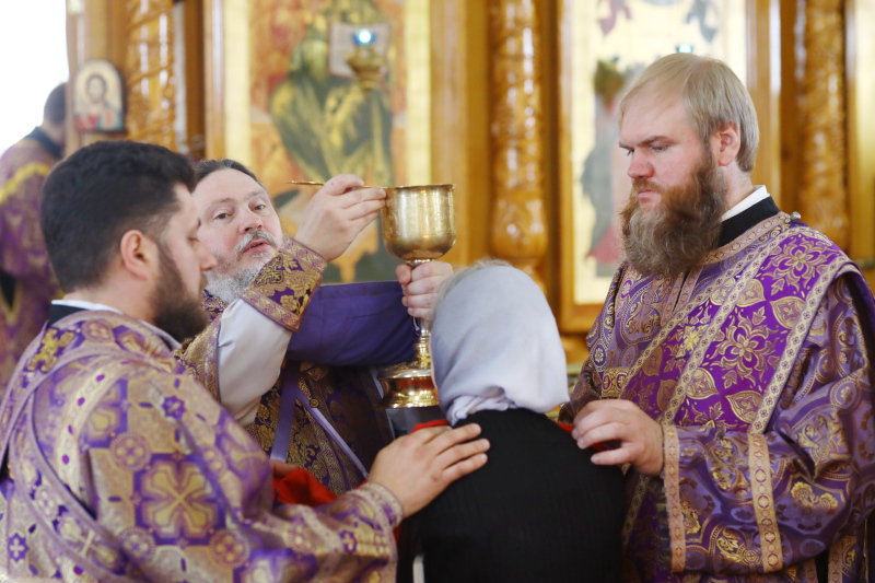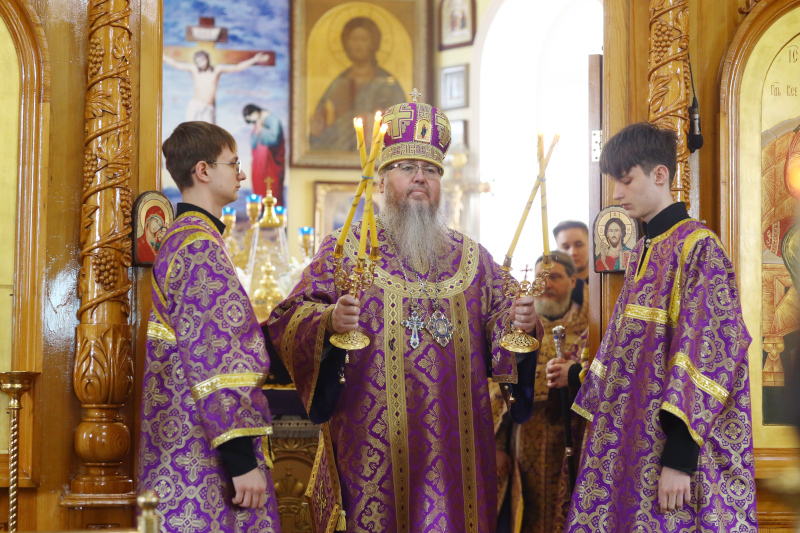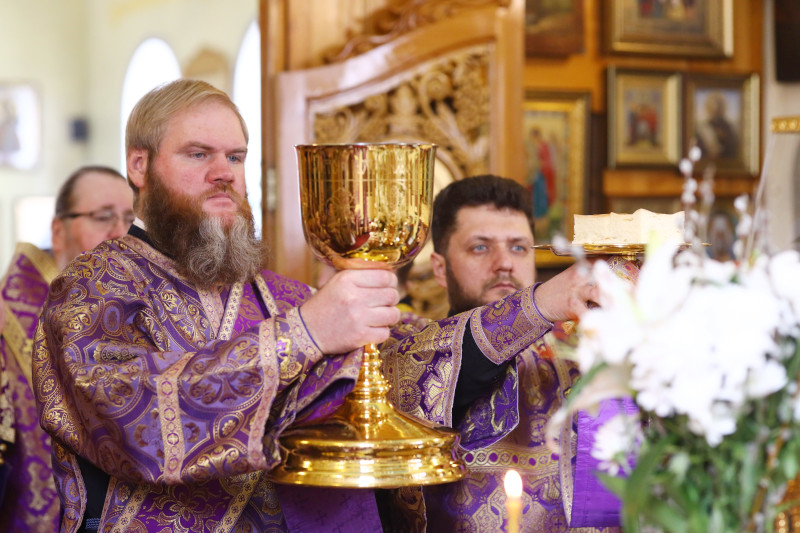 В этот день в алтаре были заготовлены запасные Святые Дары для совершения Таинства причастия на дому на следующий год. Архиерей обратился к молящимся со словами проповеди.