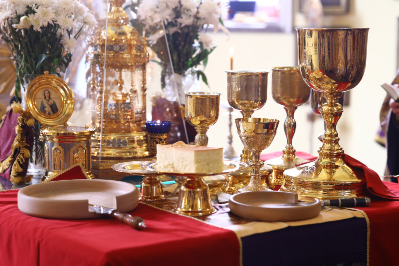 Господь преподает нам Себя в Таинстве Евхаристии, дабы каждый верующий в Него мог достичь главной и единственной цели своей жизни — приобщиться Божественной любви, приобщиться Самого Божества. Накануне крестных страданий и смерти Господь Иисус Христос совершил с учениками Свою последнюю трапезу — Тайную Вечерю. В Иерусалиме, в Сионской горнице, Спаситель с апостолами праздновал ветхозаветную иудейскую пасху, установленную в память о чудесном избавлении еврейского народа от египетского рабства. После вкушения ветхозаветной еврейской пасхи Спаситель взял хлеб и, возблагодарив Бога Отца за все Его милости к роду человеческому, преломил и подал ученикам, говоря: «сие есть Тело Моё, которое за вас предаётся; сие творите в Моё воспоминание». Потом Он взял чашу с виноградным вином, также благословил её и подал им, говоря: «пейте из неё все; Ибо сие есть Кровь Моя Нового Завета, за многих изливаемая во оставление грехов». Причастив апостолов, Господь дал им заповедь всегда совершать это Таинство: «Сие творите в Моё воспоминание». С тех пор христианская Церковь за каждой Божественной литургией совершает Таинство Евхаристии — величайшее таинство соединения верующих со Христом.